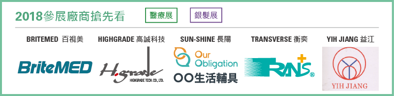 「台灣國際醫療展覽會」及「台灣國際銀髮族暨健康照護產業展」致力為廠商打造醫療及照護產業一站式採購平台,洞悉未來趨勢,抓住全球商機。本年度共計376家廠商參展,展覽內容包含電子醫療設備、診斷儀器、手術用具、醫用耗材、復健器材、行動輔具、居家及遠距照護設備、生活支援工具、保健食品等,更於展中打造三大亮點貼合產業發展: