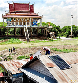 工作團隊於獅頭村安裝世界首套太陽能水下濾水系統。(記者羅沛德攝)
