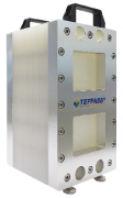 【TEFPASS®可換式薄膜蒸餾模組】 是一種複合板式結構, 利用四氟乙烯微孔膜之特性, 來進行薄膜蒸餾的裝置。適用於酸液提濃、薄膜蒸餾、氨氮回收、廢水回收領域。 適用於電子業、化工業、製藥產業、半導體業之污染防治應用, 藉由場域之廢熱進行膜蒸餾回收, 達到水資源再利用, 以及酸鹼回收/提濃, 邁向液體零排放目標。 |